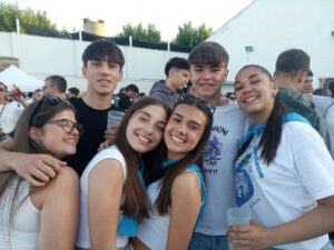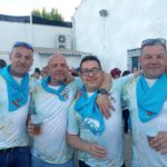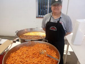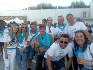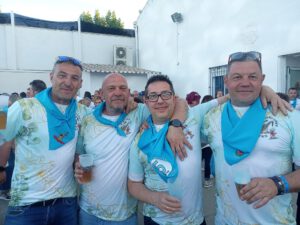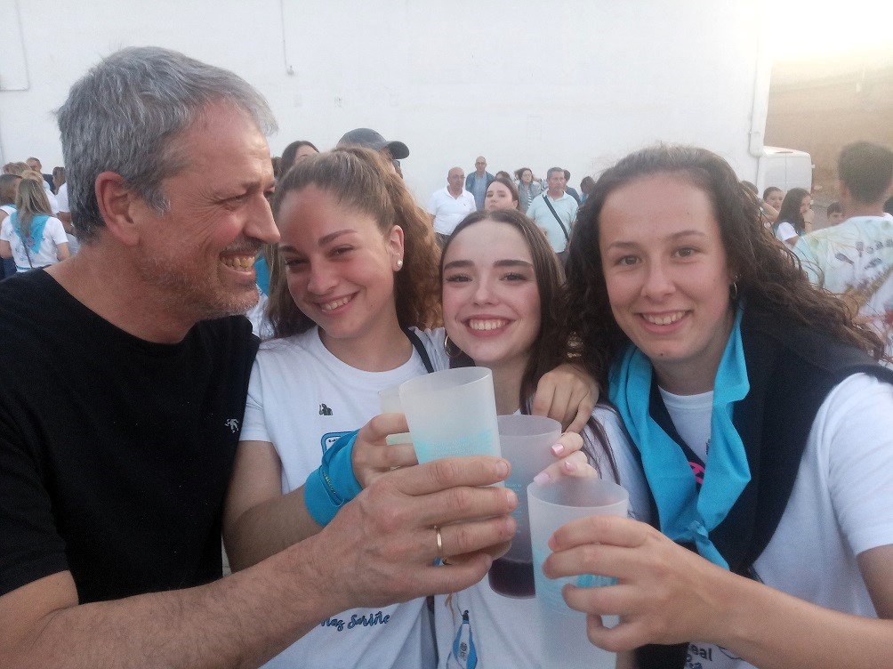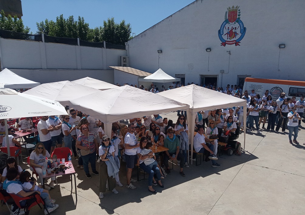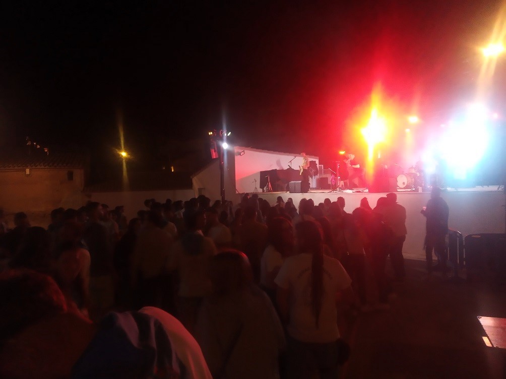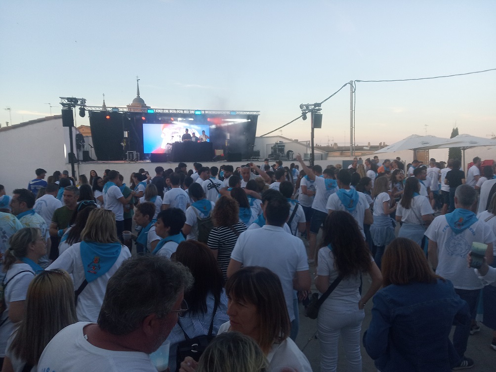 Tras los discursos e intervenciones, continuó la velada con una comida con casi cuatrocientos comensales al precio de 12€ los adultos socios y 20€ los no socios, que degustaron de primer plato migas a la pastora, de segundo caldereta de ternasco y un flan de postre, y de bebida lo habitual, agua, vino y gaseosa, para los pequeños hubo macarrones con tomate. Café para el que quiso, y comenzó el tardeo con los DJs Dani Tella y Santi Buey, que desde las cinco de la tarde llenaron de música el ambiente y metieron marcha al personal. Del calor matutino fue rebajando la temperatura conforme el sol descendía en su recorrido vespertino, hasta que las últimas luces del día llegaron, aproximadamente a la misma hora, 21 h, que comenzó la Cocoloco Band, continuando después el DJ Serena, que se alargó hasta las tres de la madrugada para todo aquel que pudo resistir. Una gran velada de 45º aniversario que dejó preparado el ambiente para la próxima gran cita: los 50 años.
