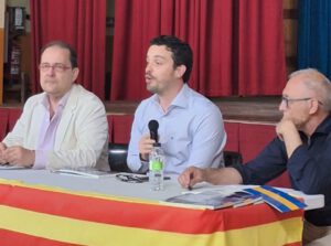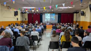 Y tomó la palabra Darío Villagrasa que relató el contexto histórico a nivel nacional y regional en el que se produjo aquel Día de la Provincia el 17 de noviembre de 1974, cuando tras décadas de reivindicaciones fallidas del medio rural aragonés sobre el agua, la amenaza de un trasvase del Ebro a gran escala hizo que se movilizaran de nuevo las fuerzas sociales y políticas de Aragón, que se dieron cita aquel día en Bujaraloz, lugar donde se acuñó por primera vez el tan conocido “Aragón tiene sed”: