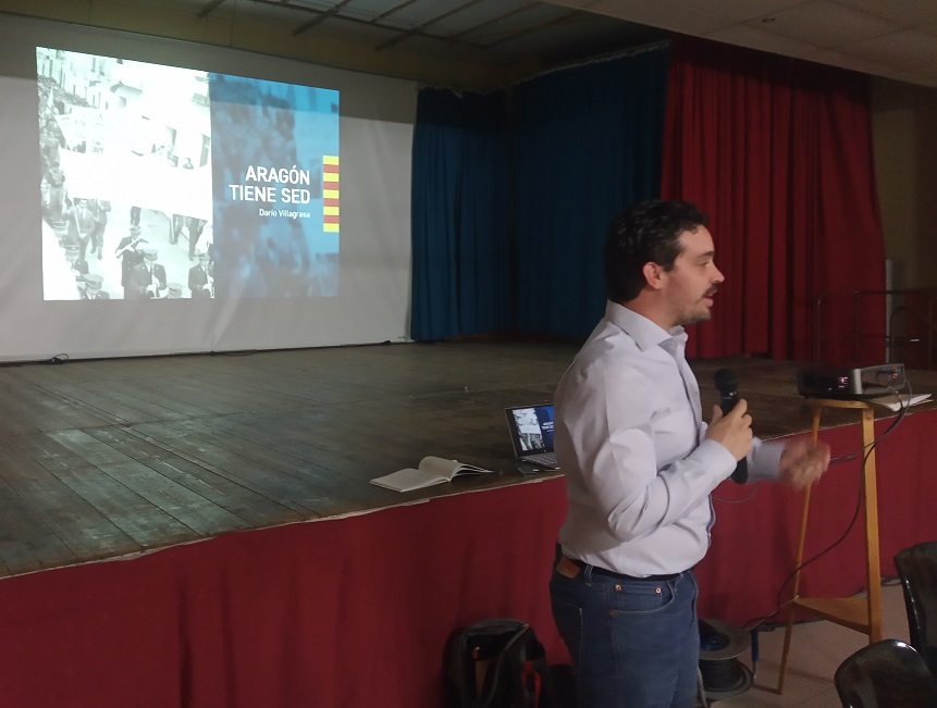 Pasadas las 19.30 horas, comenzaba el pasado viernes 16 de mayo de 2025 en el salón de actos del Ayuntamiento de Bujaraloz la presentación del libro Aragón tiene sed del autor Darío Villagrasa, publicado por Sariñena Editorial.