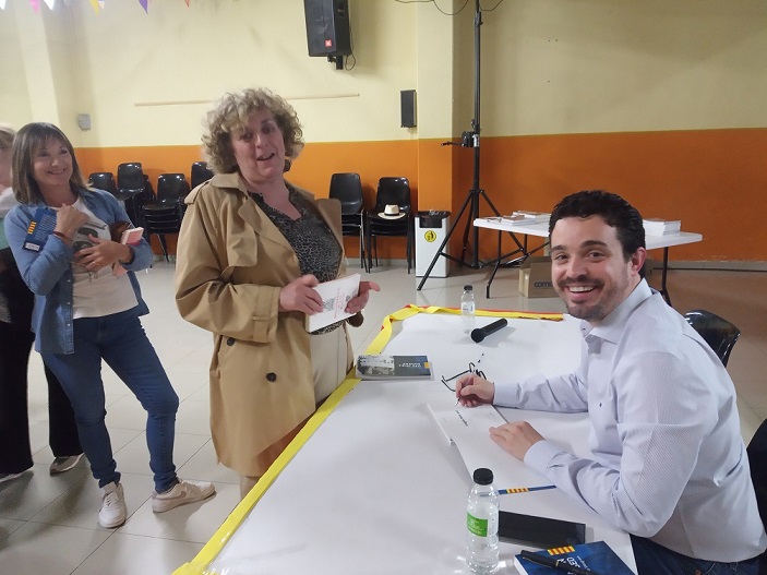 Cerró su intervención con gran ovación, dando paso a varios comentarios de personas mayores que recordaron sus vivencias de aquellos tiempos en los que era un sueño tener grifos con agua en la población, y donde los aljibes y tinajas rellenados periódicamente con agua de la “balsa buena” era una realidad que marcó tanto aquella época como la presente. Una larga cola se formó para la firma de ejemplares, en las que Darío gustoso, alegre y relajado, conversó de nuevo mientras firmaba sobre aquel periodo que marcó una parte profunda en la historia de Bujaraloz.