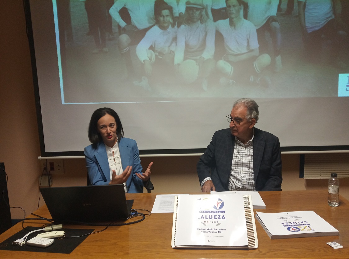 A pesar de haber entrado el mes de noviembre, un tiempo agradable acompañaba la tarde del viernes día 7, cuando se presentó en el salón de actos de la Casa de Cultura de Sariñena el libro 100 años de fútbol en Lalueza de los autores Santiago Vilella y Noelia Vizcarra. Tuve el placer de hacer una breve presentación del acto. Santiago Vilella, también conocido como el “farmaceútico de Lalueza”, ya tiene en su trayectoria dos libros que relatan Historia de Lalueza de otra época, como una interesante publicación sobre uno de los hermanos Comenge de Lalueza, En la vida de Juan Andrés Comenge, último de su saga y benefactor del municipio, pues dejó en herencia muchas de sus propiedades al Ayuntamiento; y presentó también a finales de 2024 El Cerrudo de Lalueza sobre uno de los lugartenientes del famoso bandido Cucaracha. Articulista, director e impulsor de la revista local El Recautillo, fue futbolista y capitán del F.C. Lalueza, además de secretario de la directiva durante varios años, y está implicado en muchos aspectos de la vida social de Lalueza.